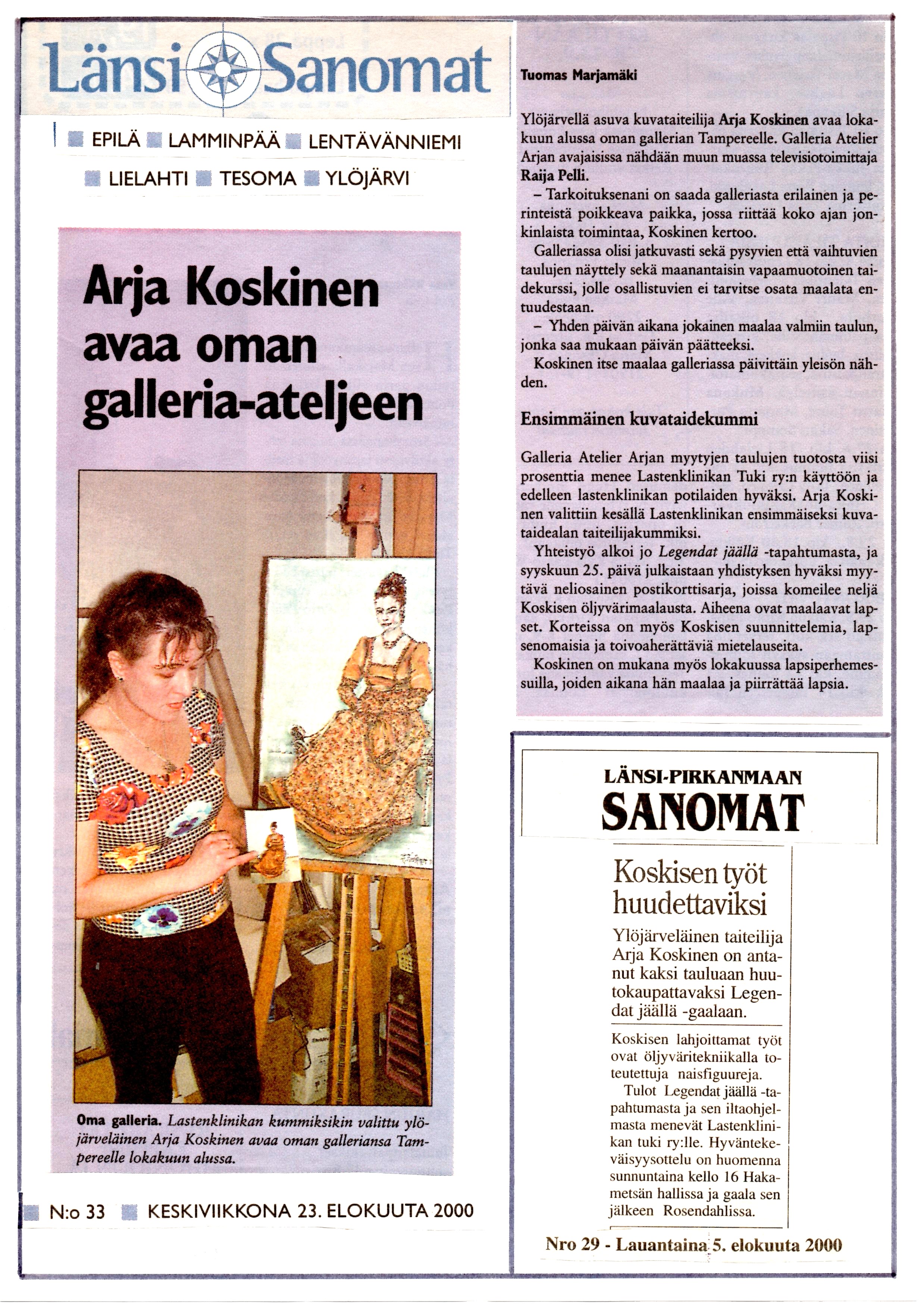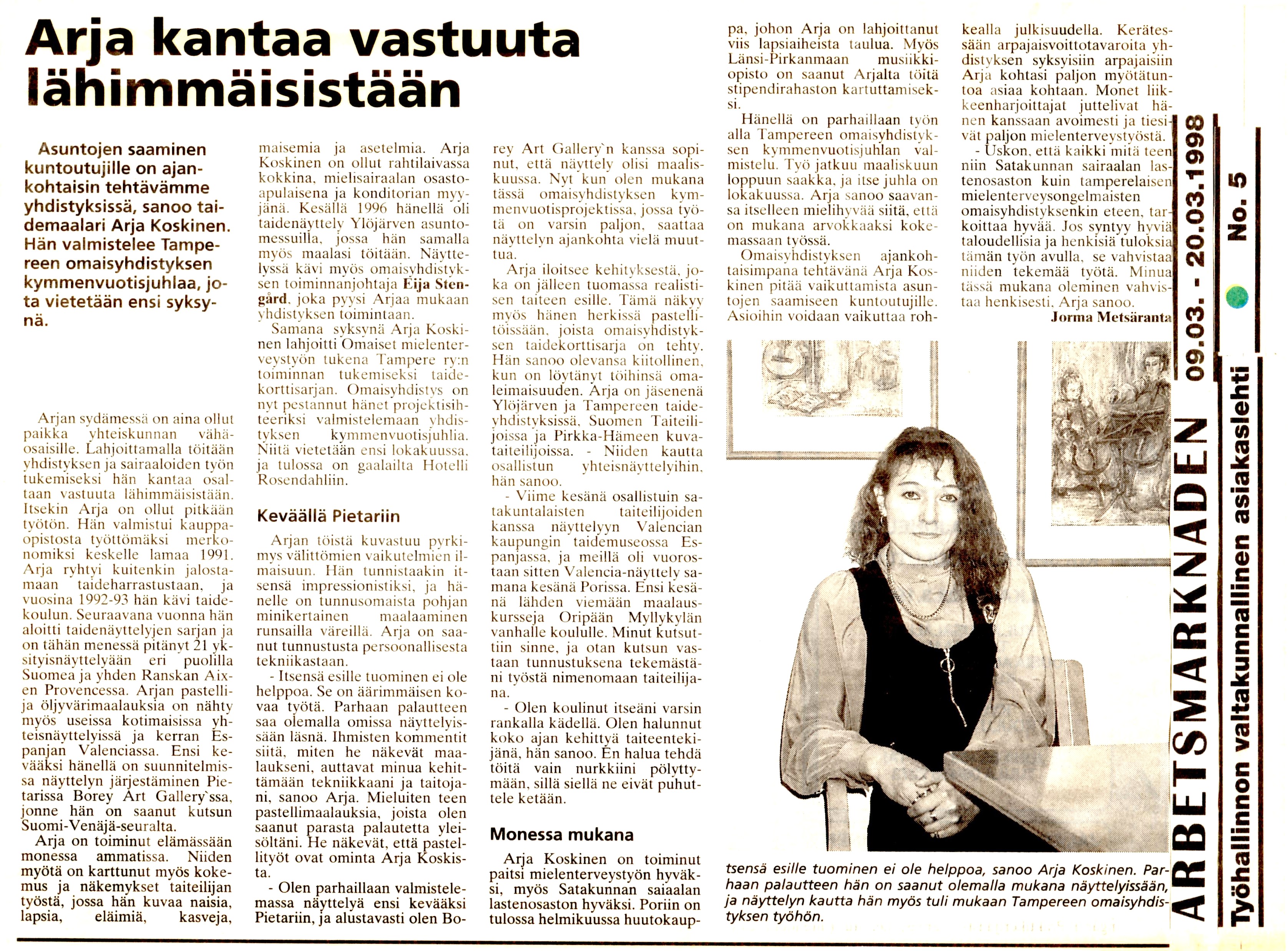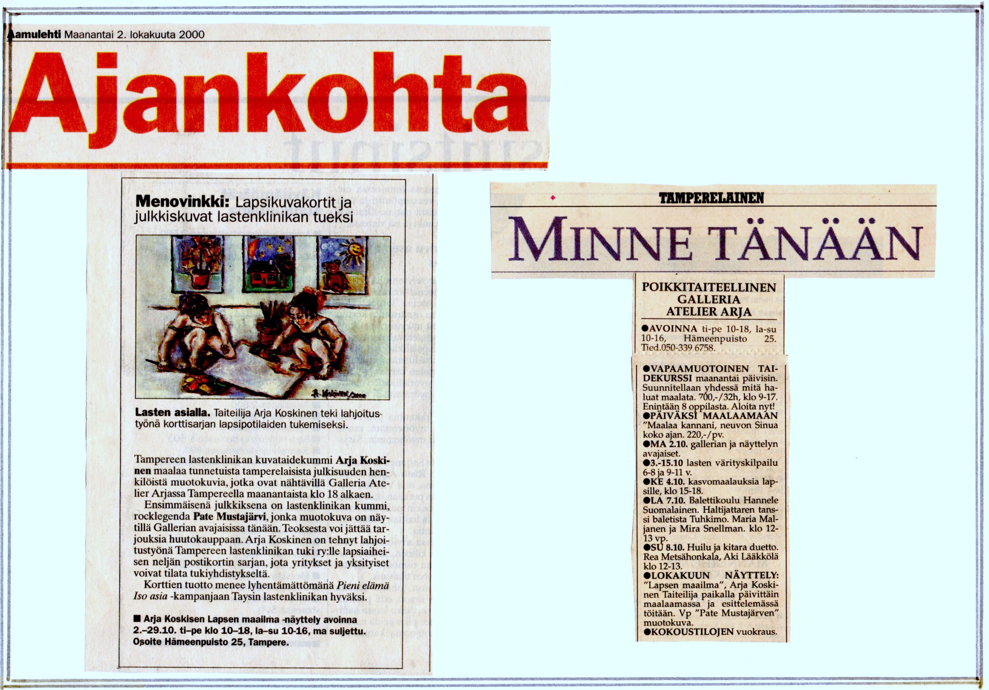 Taiteestani julkaistuja lehtijuttuja vuosien varrelta.